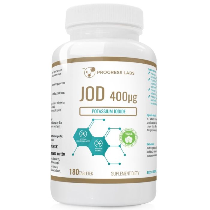 Zmagasz się ze zmęczeniem, rozdrażnieniem lub zimnymi dłońmi? Jod Jodek Potasu 400 mcg wspiera prawidłowe funkcjonowanie tarczycy i pomaga uzupełnić ewentualne niedobory. Każda łatwa do połknięcia tabletka Progress Labs dostarcza precyzyjną porcję jodu w dobrze przyswajalnej formie KI. Regularna suplementacja wspiera produkcję hormonów tarczycowych, metabolizm energetyczny i układ nerwowy. To wsparcie dla osób ograniczających sól jodowaną lub na diecie roślinnej. 180 tabletek to aż 6 miesięcy stosowania.