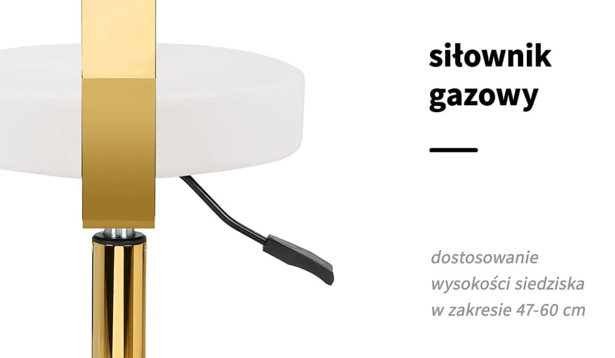 Tapicerka z ekoskóry w klasycznych odcieniach czerni lub bieli łączy w sobie trwałość, łatwość czyszczenia i elegancki wygląd. Starannie wykonane pikowania i obszycia nadają meblowi wyjątkowego charakteru, a złote lakierowane elementy wprowadzają nutę luksusu. Ten nowoczesny design sprawia, że taboret nie tylko spełnia funkcję użytkową, ale również estetycznie uzupełnia wnętrze.