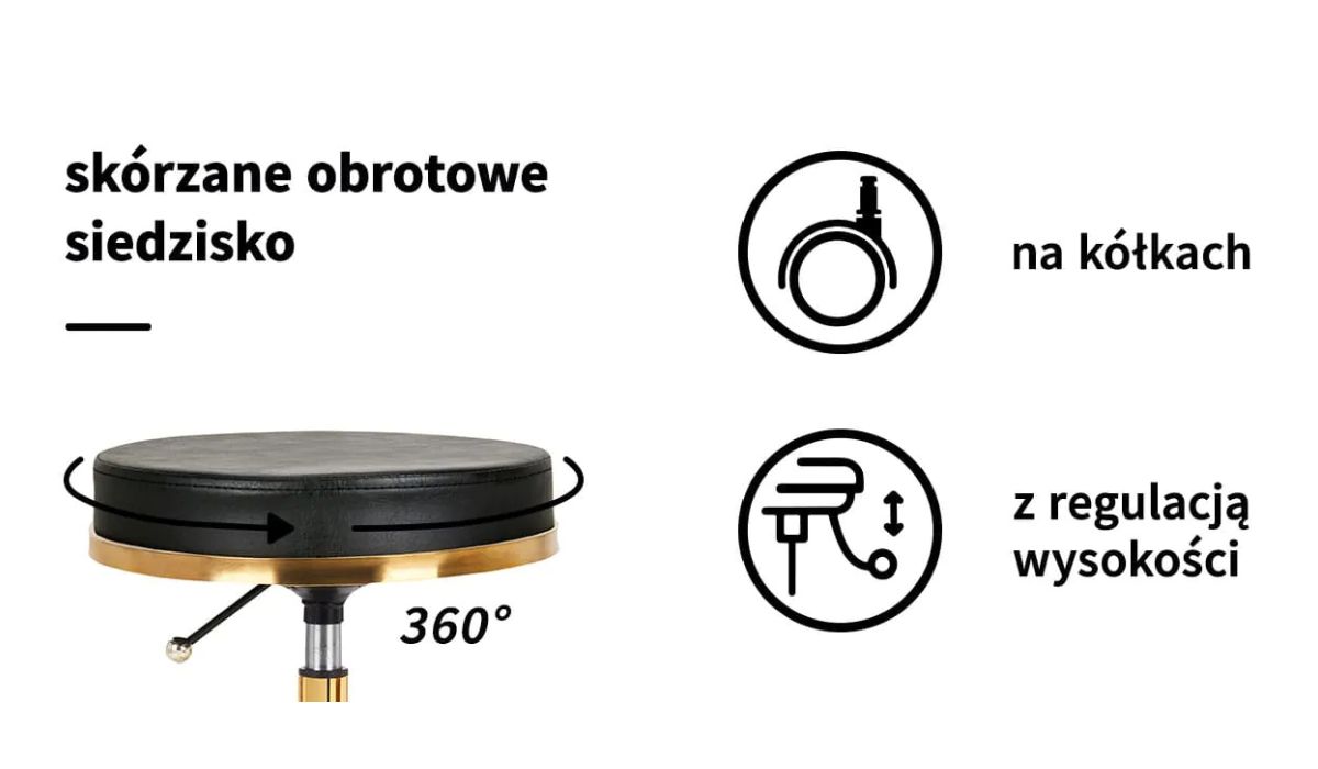 - Wygodne, obrotowe siedzisko – zwiększa mobilność i komfort w trakcie wykonywania zabiegów.