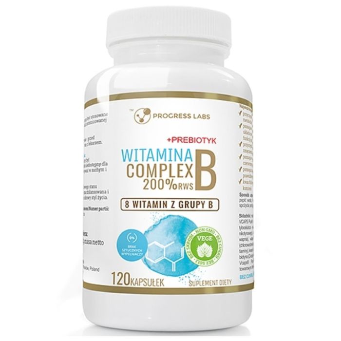 Witamina B Complex 200% RWS pomaga, gdy dokucza zmęczenie, stres i spadek koncentracji. Witamina B Complex 200% RWS dostarcza osiem kluczowych witamin B (B1, B2, B3, B5, B6, B7, B9, B12) w porcji 200% dziennej referencyjnej wartości. Formuła wspiera prawidłowe funkcjonowanie układu nerwowego, metabolizm energii oraz redukcję uczucia zmęczenia i znużenia. 120 kapsułek to wygoda i ekonomia suplementacji, a dodatek probiotyku wspiera komfort jelitowy.